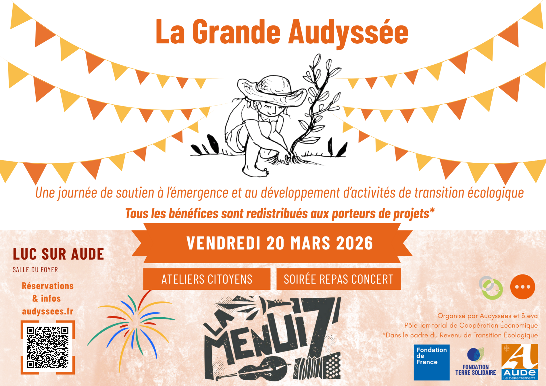 Pour vous inscrire vous pouvez venir lors des réunions d'information collectives ou en venant au tiers lieux sur rendez-vous à contact@audyssees.fr.