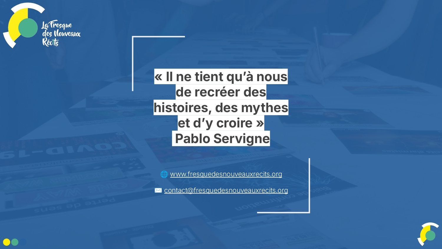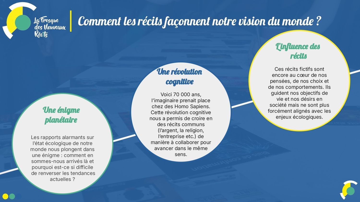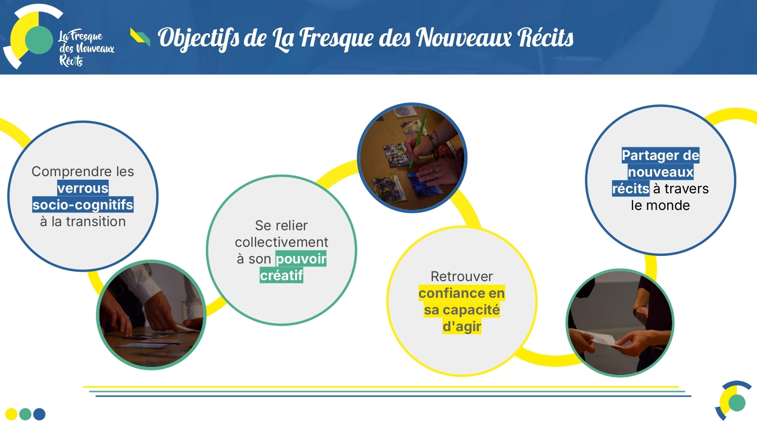 ► INTENTION DE L'ATELIER : La Fresque des Nouveaux Récits est une expérience collaborative et pédagogique qui vise à empouvoirer les pionniers et pionnières de la transition à travers :