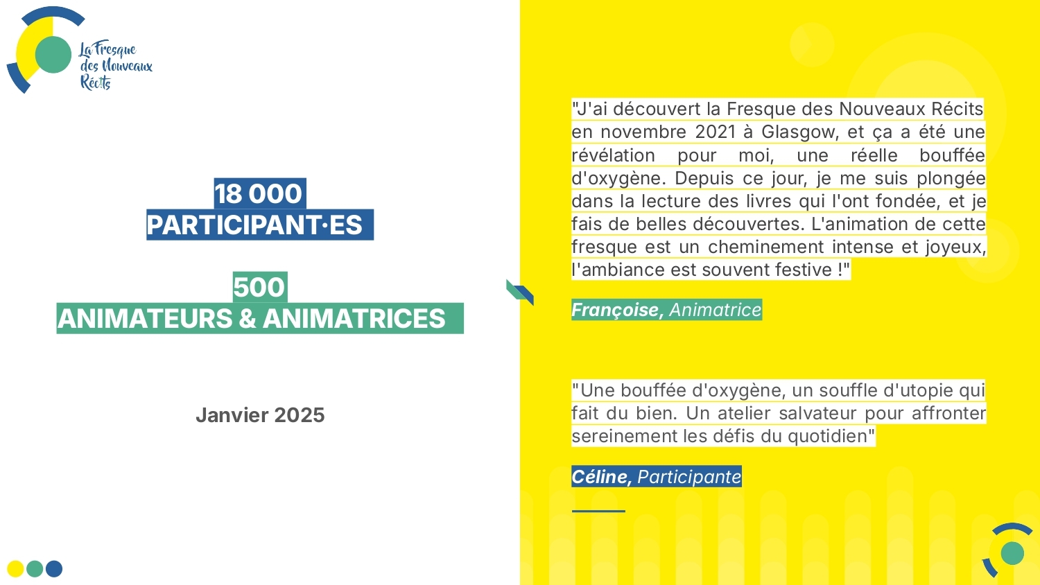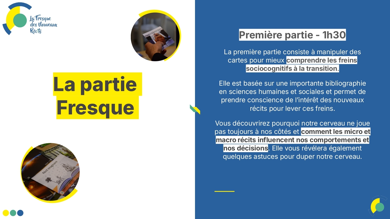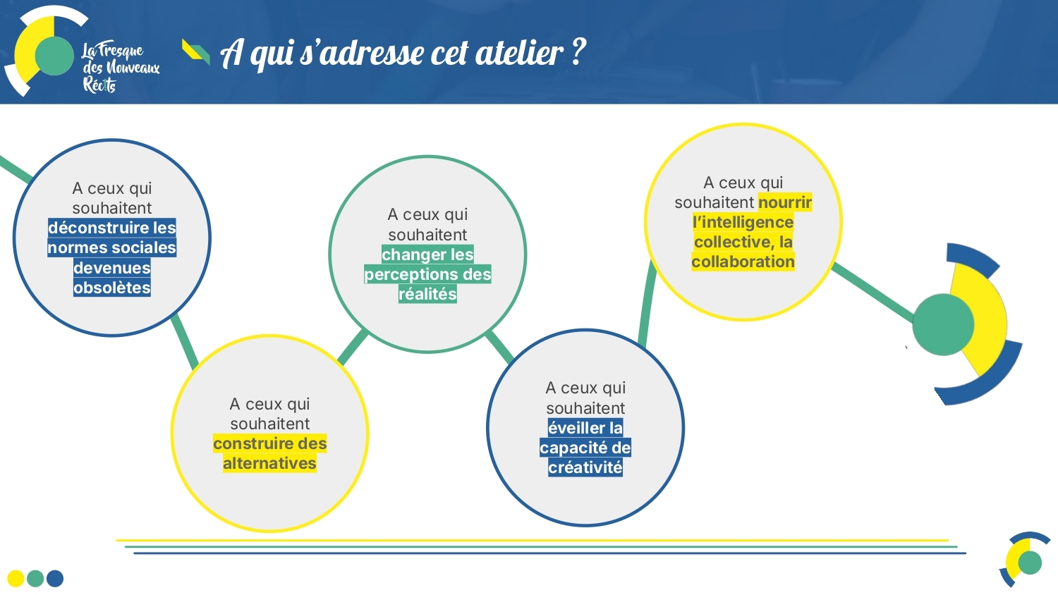 ► INTENTION DE L'ATELIER : La Fresque des Nouveaux Récits est une expérience collaborative et pédagogique qui vise à empouvoirer les pionniers et pionnières de la transition à travers :